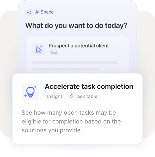 The AI lives within your dashboards, tasks, and reports. No app-switching needed.