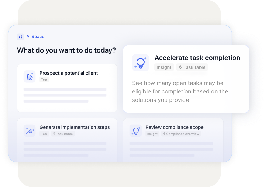 Your platform already understands your client. Every workflow, assessment, and task includes built-in context — why it matters, what it impacts, and what to do next.